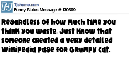 X says Regardless of how much time you think you waste, just know that someone created a very detailed Wikipedia page for Grumpy Cat.