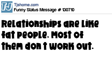 - # 53870 Relationships are like fat people, most of them don't work out.