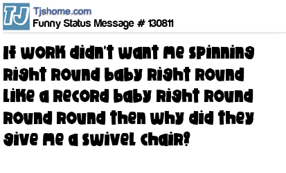 X says If work didn't want me spinning right round baby right round like a record baby right round round round then why did they give me a swivel chair?