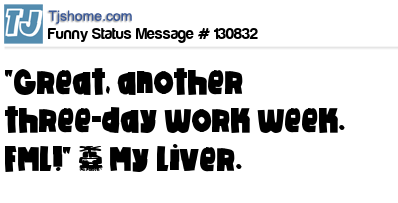 X says "Great, another three-day work week. FML!" ~ My Liver.