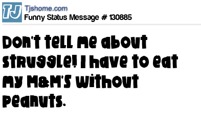 X says Don't tell me about struggle! I have to eat my M&M'S without peanuts.