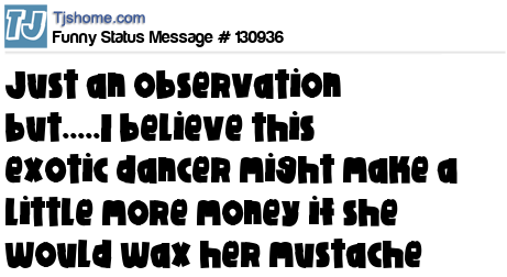 X is Just an observation but.....I believe this exotic dancer might make a little more money if she would wax her mustache