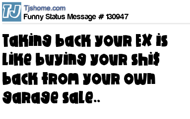 - # 158644 You know the relationship is over when you have to buy your stuff back from a garage sale...