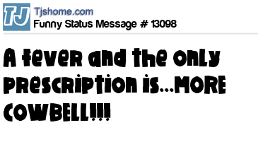 - # 36089 Guess what? I've got a fever and the only prescription is more cowbell.