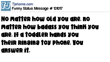 - # 80150 Now matter how old you are, No matter how much you think you're a Badass.. If a toddler hands you their ringing toy phone, you answer it!