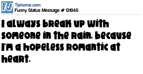 X says I always break up with someone in the rain, because I'm a hopeless romantic at heart.