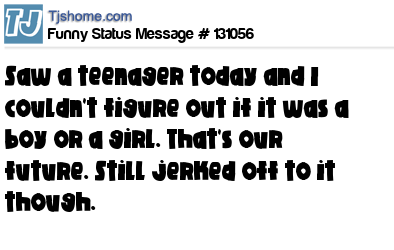 X says Saw a teenager today and I couldn't figure out if it was a boy or a girl. That's our future. Still jerked off to it though.