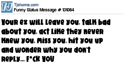 X Your ex will leave you, talk bad about you, act like they never knew you, miss you, hit you up and wonder why you don't reply... F*CK YOU