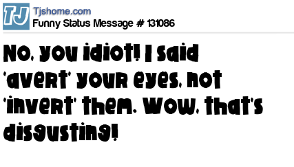 X No, you idiot! I said 'avert' your eyes, not 'invert' them. Wow, that's disgusting!