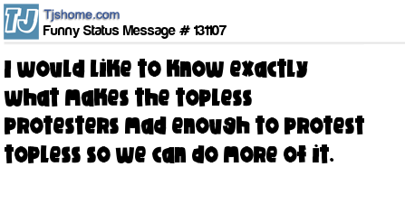 X says I would like to know exactly what makes the topless protesters mad enough to protest topless so we can do more of it.