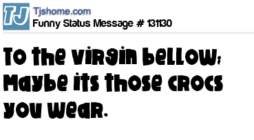 X says To the virgin bellow; Maybe its those crocs you wear.
