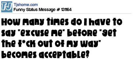 X How many times do I have to say "excuse me" before "get the f*ck out of my way" becomes acceptable?