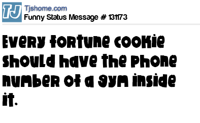 X says Every fortune cookie should have the phone number of a gym inside it.
