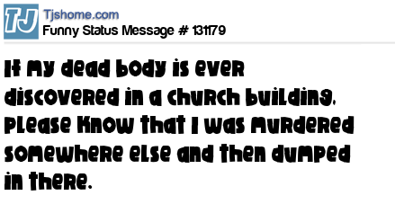 X says If my dead body is ever discovered in a church building, please know that I was murdered somewhere else and then dumped in there.