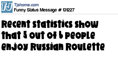 - # 131254 5 out of 6 people really enjoy Russian roulette.