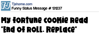 - # 26785 pretty sure that if fortune telling was real every fortune in every fortune cookie would read "You are about to eat a stale cookie, boo-yah!"