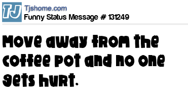 - # 182163 I love how coffee fixes everything. Tired? Drink some coffee. Headache? Drink coffee. Cold? Drink coffee. Someone makes your angry? Bust them in the head with a hot cup of coffee!