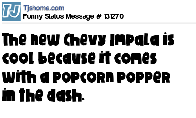 X The new Chevy Impala is cool because it comes with a popcorn popper in the dash.
