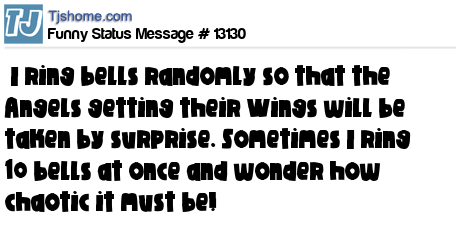 X says I ring bells randomly so that the Angels getting their Wings will be taken by surprise. Sometimes I ring 10 bells at once and wonder how chaotic it must be!