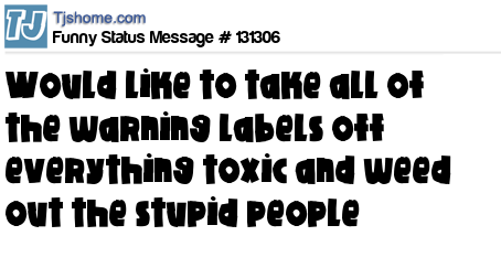 - # 11754 would like to take all of the warning labels off everything toxic and weed out the stupid people in my life