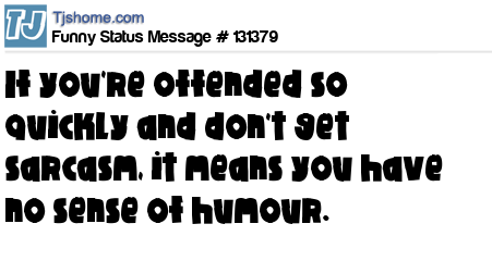 - # 131381 If you're offended so quickly and don't get sarcasm, it means you have no sense of humour and ruin everyone else's humor.