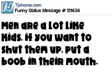 X says Men are a lot like kids, if you want to shut them up, put a boob in their mouth.