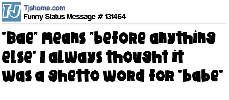 - # 143388 Apparently “bae” means “before anyone else.” I always thought it was an extremely ghetto word for “babe”...