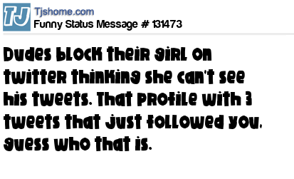 X Dudes block their girl on twitter thinking she can't see his tweets. That profile with 3 tweets that just followed you, guess who that is.