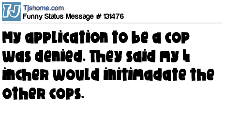 X is My application to be a cop was denied. They said my 4 incher would initimadate the other cops.