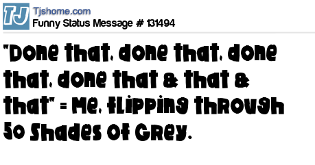 X says "Done that, done that, done that, done that & that & that" = Me, flipping through 50 Shades Of Grey.