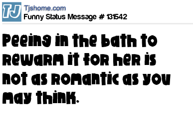 - # 145777 Why is it "romantic" when Aladdin sings A Whole New World while flying on a carpet but "pathetic" when I sing it while laying on a bath mat?