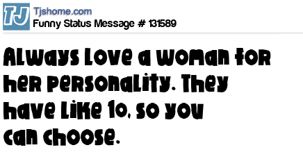 X Always love a woman for her personality. They have like 10, so you can choose.