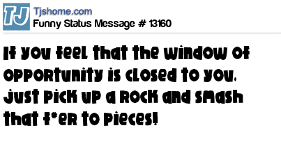 X says if you feel that the window of opportunity is closed to you, just pick up a rock and smash that f*er to pieces!