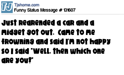 - # 79723 I rear ended a midget with my car the other day. So he go out and looked at me and said, "Im not happy," so I asked, "So then what Dwarf are you?