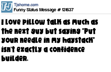 X says I love pillow talk as much as the next guy but saying "Put your needle in my haystack" isn't exactly a confidence builder.