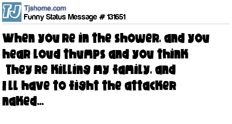 - # 165923 When you're in the shower, you hear loud thumps and you think "they're killing my family, now I'll have to fight the attacker naked..."