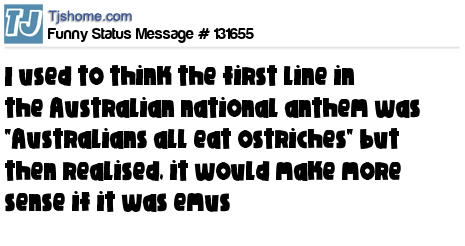 X I used to think the first line in the Australian national anthem was "Australians all eat ostriches" but then realised, it would make more sense if it was emus