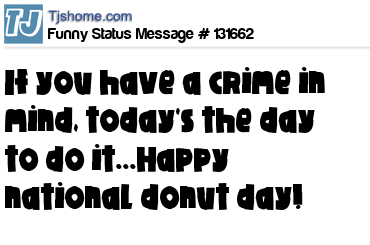 X says If you have a crime in mind, today's the day to do it...Happy national donut day!