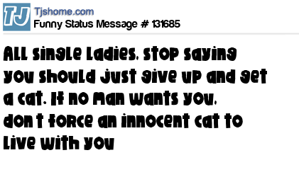 - # 131201 All you single ladies, please stop saying you should just give up and get a cat. If no man wants you, don't subject an innocent cat to a life with you.