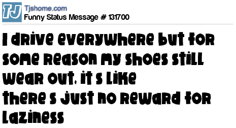 X is I drive everywhere but for some reason my shoes still wear out, it’s like there’s just no reward for laziness
