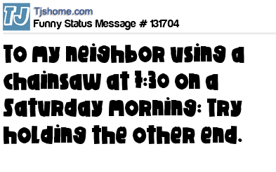 X says To my neighbor using a chainsaw at 7:30 on a Saturday morning: Try holding the other end.