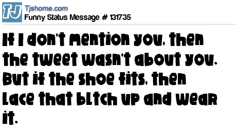 - # 121629 If I don't mention you, then the status wasn't about you. But if the shoe fits, then lace it up and wear it.