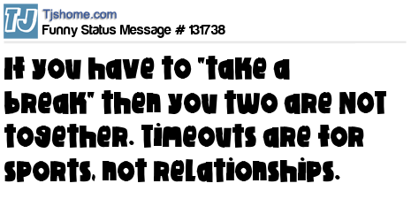 X If you have to "take a break" then you two are NOT together. Timeouts are for sports, not relationships.