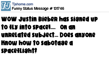 X WOW Justin Bieber has signed up to fly into space!.... On an unrelated subject... Does anyone know how to sabotage a spaceflight?