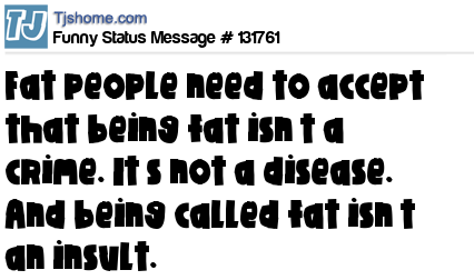 X says Fat people need to accept that being fat isn’t a crime. It’s not a disease. And being called fat isn’t an insult.