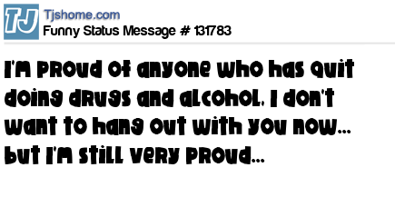 X I'm proud of anyone who has quit doing drugs and alcohol, I don't want to hang out with you now... but I'm still very proud...