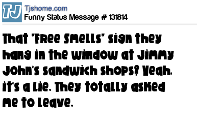 X That "Free Smells" sign they hang in the window at Jimmy John's sandwich shops? Yeah, it's a lie. They totally asked me to leave.