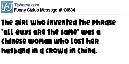 X says The girl who invented the phrase "all guys are the same" was a Chinese woman who lost her husband in a crowd in China.