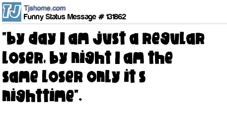X "by day I am just a regular loser, by night I am the same loser only it’s nighttime".