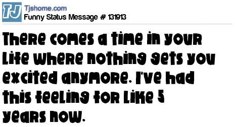 X says There comes a time in your life where nothing gets you excited anymore. I've had this feeling for like 5 years now.